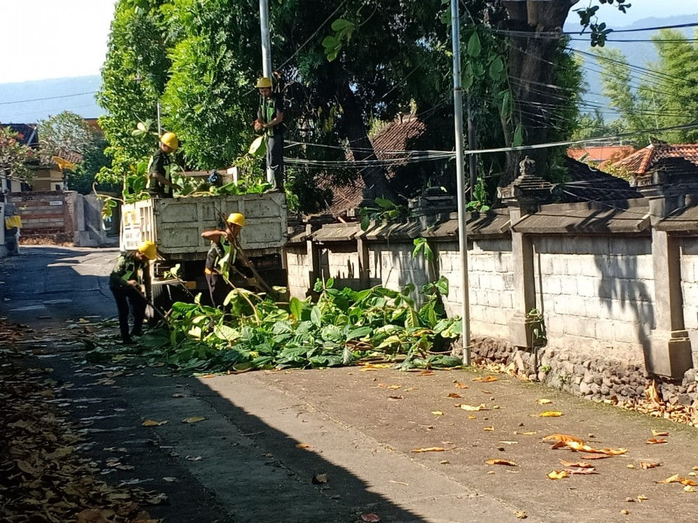KIM Surya Bhuana Desa Panji, Singaraja - Dinas Lingkungan Hidup (DLH) Kabupaten Buleleng melakukan pemangkasan pohon ketapang besar di area Kantor Samsat Singaraja dan dahan yang melintang ke Gang Cempaka, Rabu 15 April 2026.Pemangkasan dilakukan oleh 9 orang petugas DLH dengan dukungan 2 armada truk. Kegiatan ini disaksikan langsung oleh Pejabat Samsat, Bapak Ketut Swastika, dan saksi dari masyarakat, Made Resika selaku Ketua RT Warga Cempaka.Dasar pemangkasan ini adalah keberatan yang diajukan warga RT Cempaka. Dahan pohon ketapang yang rimbun menyebabkan daun berguguran dan menumpuk di kali gang. Tumpukan sampah dedaunan itu menyumbat aliran air dan dikhawatirkan menimbulkan genangan serta sarang nyamuk saat musim hujan.“Hasil kerja sudah berjalan dua kali pemotongan, kemarin dan hari ini. Besok rencana dilanjutkan sampai seluruh bagian tumbuhan yang mengganggu terpotong,” jelas salah satu petugas DLH di lokasi.Bapak Ketut Swastika menyampaikan apresiasi atas gerak cepat DLH Buleleng. Sementara Ketua RT Cempaka, Made Resika, berharap setelah pemangkasan selesai, aliran kali di gang kembali lancar dan lingkungan menjadi lebih bersih.DLH Kabupaten Buleleng menargetkan pemangkasan tuntas dalam beberapa hari ke depan dengan tetap memperhatikan faktor keamanan warga dan pengguna jalan di sekitar Kantor Samsat.